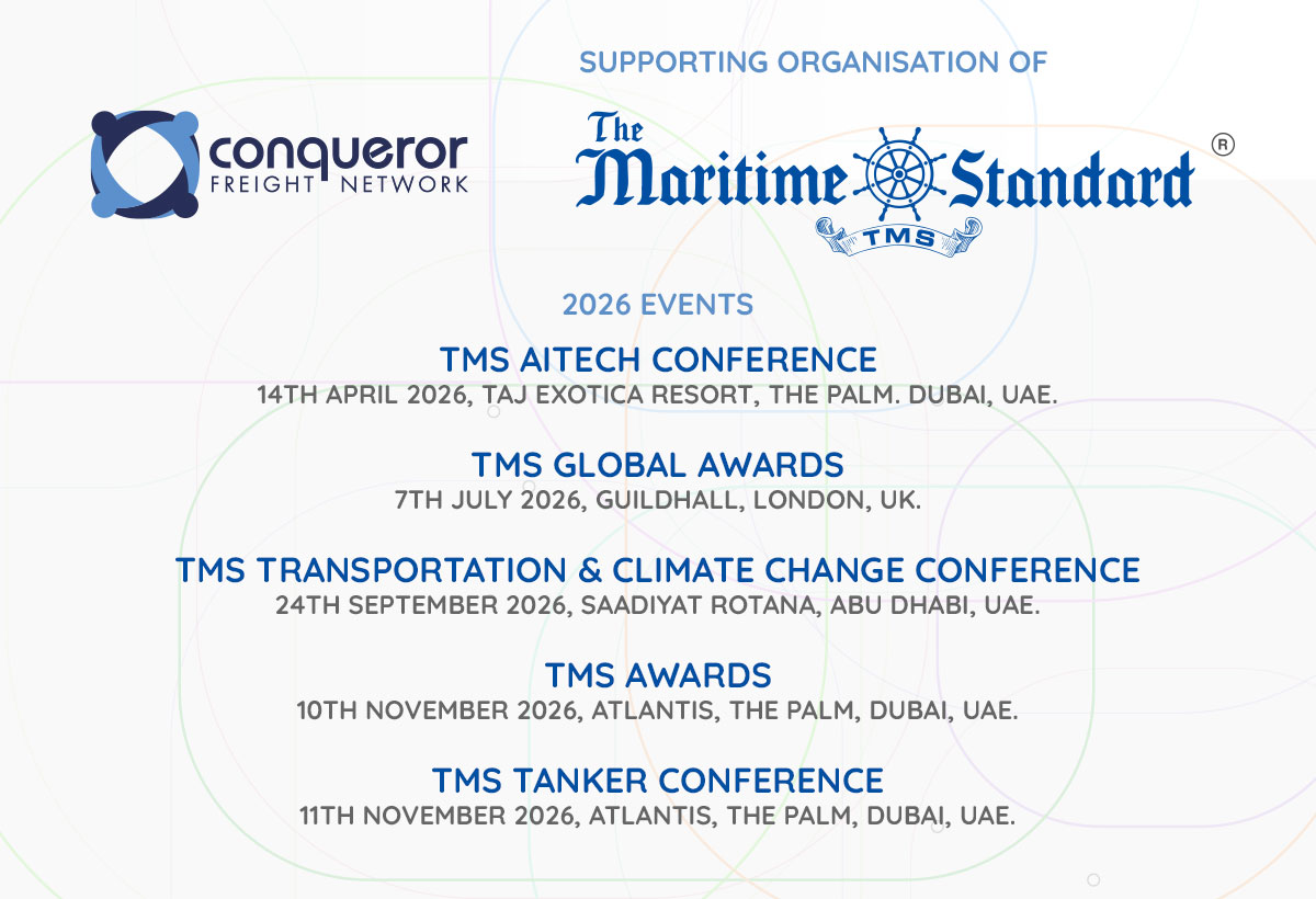 Conqueror Freight Network is pleased to announce a partnership agreement with The Maritime Standard (TMS), under which Conqueror will serve as the supporting organisation for all major TMS events scheduled throughout 2026. This partnership reinforces cooperation between the freight forwarding and maritime sectors, fostering closer connections between logistics providers, shipping lines, port authorities, and maritime service companies. As the supporting organisation, Conqueror will actively promote participation among its global membership and help broaden the international reach of these prominent industry gatherings. The partnership covers the complete calendar of TMS conferences and awards, listed below in chronological order.