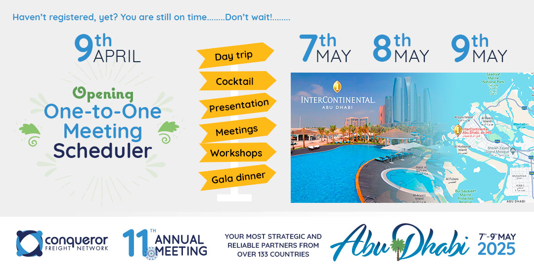 Conqueror Freight Network, the largest exclusive freight forwarders network in the world, successfully wrapped up its 11th Annual Conference. The event took place from 7th to 9th May 2025 at the Intercontinental Hotel in Abu Dhabi, bringing together over 100 independent freight forwarders from around the globe for three days of strategic networking, collaboration, and industry-focused discussions.