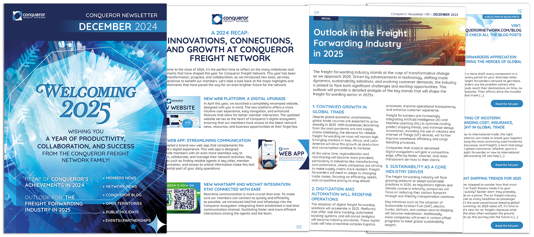 Conqueror Freight Network has published the December edition of its quarterly newsletter which is available for viewing on the website. This issue brings the readers key updates about Conqueror’s upcoming conference in Abu Dhabi, industry insights, and the news from the members in the last 3 months.